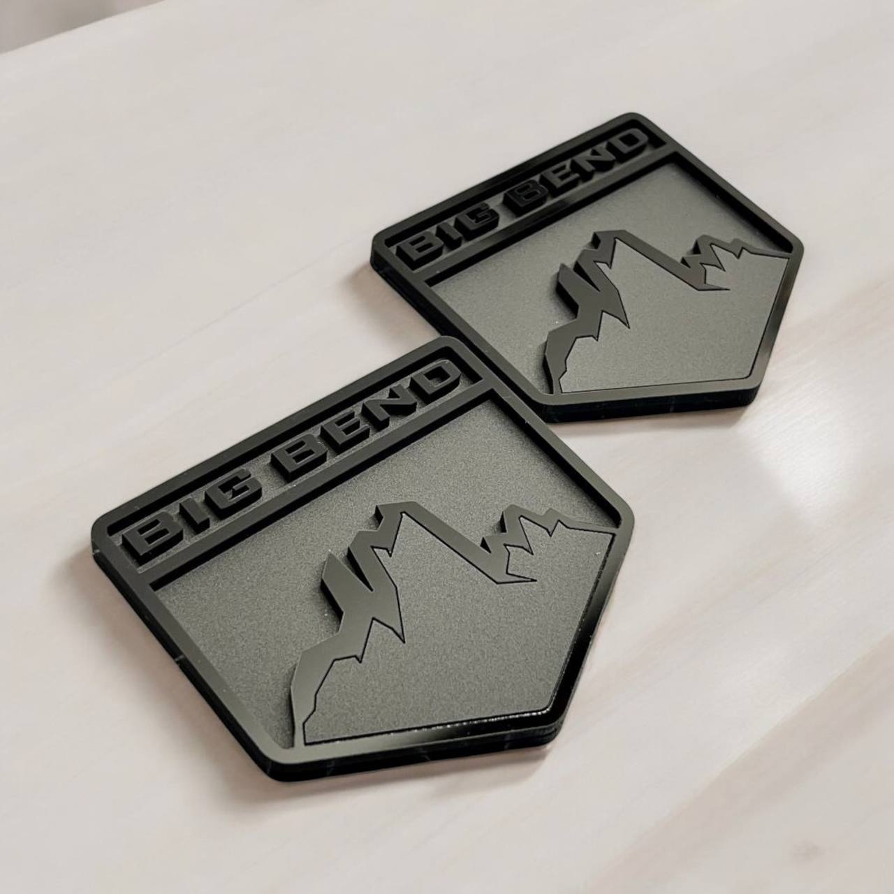 Big Bend Style Mountain Emblems for Ford Bronco – Matte Black Acrylic Badge Set of 2